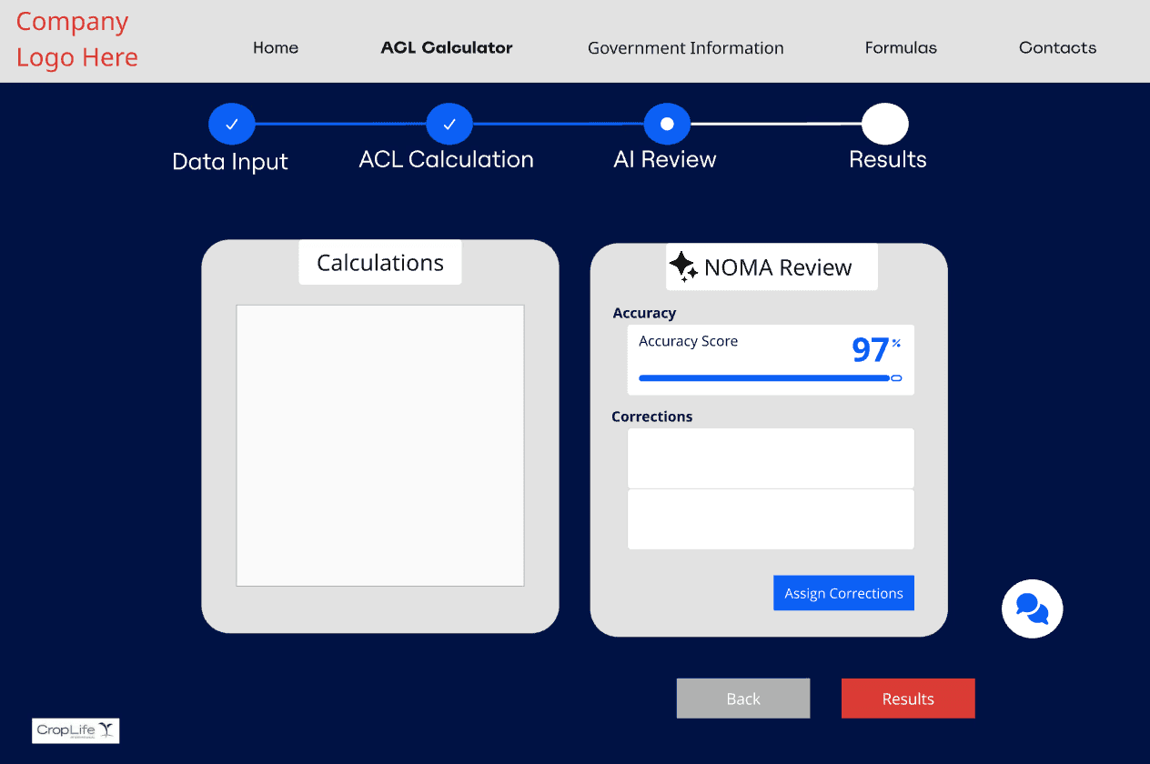 One early concept used two AI agents: one to run the ACL calculation and a second to independently verify the result. This approach directly addressed the need for error-proofing in a calculation heavy workflow.
